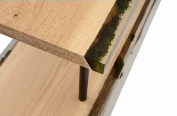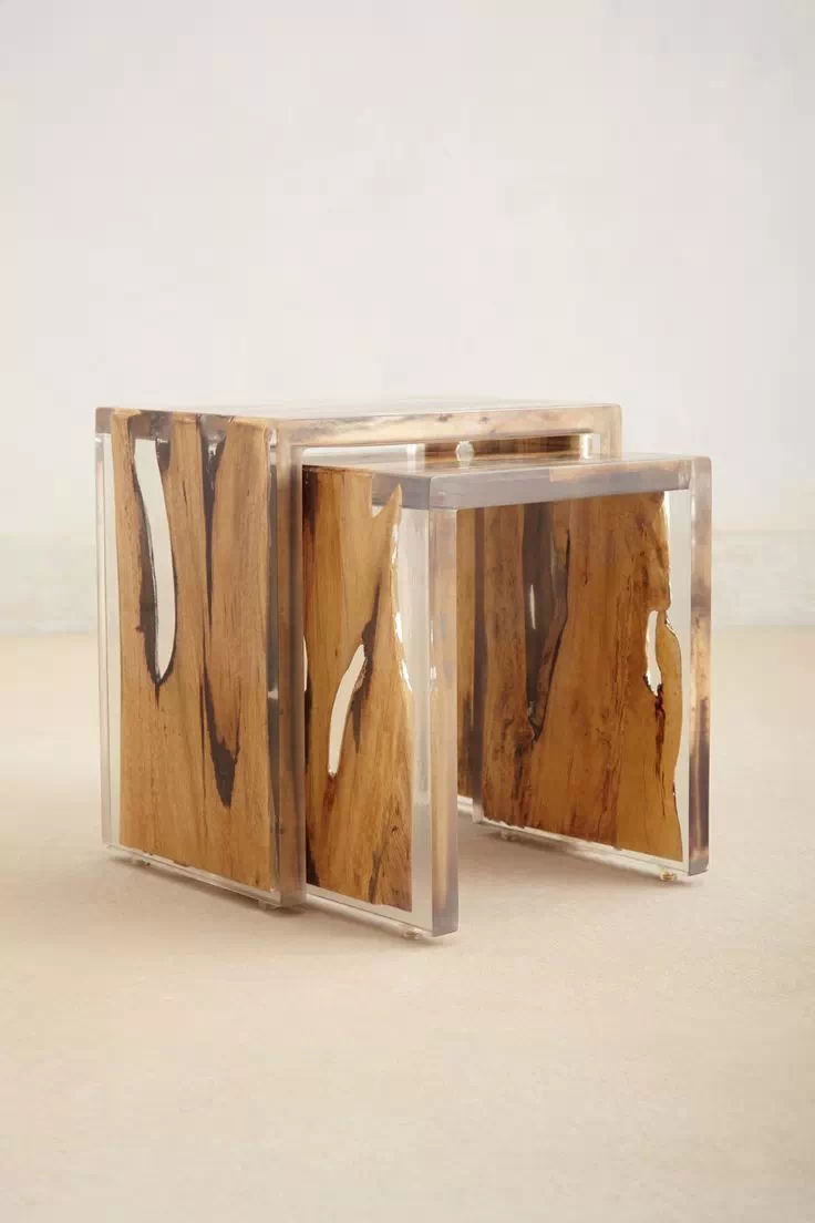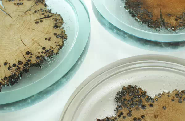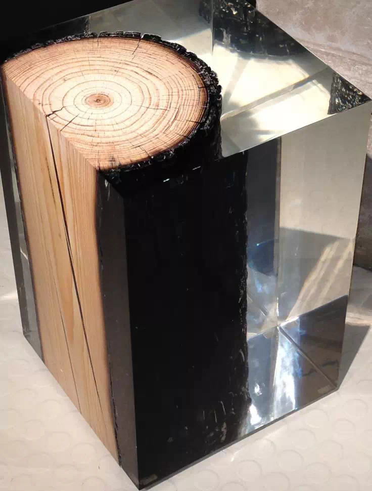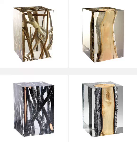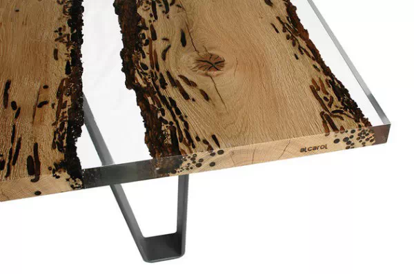 意大利Alcarol工作室爱使用树脂,之前是将树脂与橡木结合在一起。家具系列则展示了错综复杂的树脂纹理与透明玻璃的时尚结合。