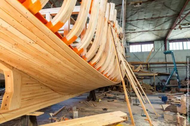 卡累里亚位于欧洲东北部,苏联西北的白海和芬兰湾之间,这里的紧邻大海,湖泊众多,在奥涅加湖附近有一个至今仍使用木头建造各种船只的造船厂 Varyag,在俄罗斯,森林、木头资源丰富,木头造船已经流行了千年,为什么不继续制造呢?